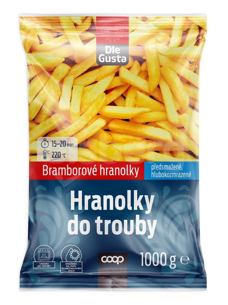 Příprava: v troubě rozehřáté na 220 ⁰C 15-20 min, dokud nejsou hranolky zlatavé, během přípravy je potřeba hranolky obracet