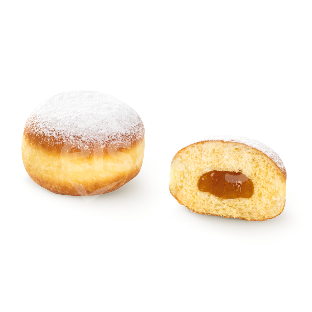 Jemné pečivo smažené, plněné meruňkovou náplní, cukrová posypka. Plně dopečené, hluboce zmrazené.