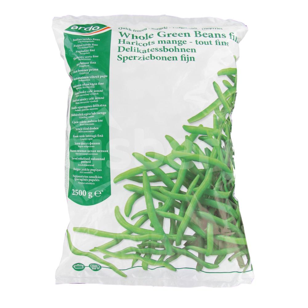 Nekrájené zelené fazolky. Vhodné například jako grilovaná příloha k pokrmům.