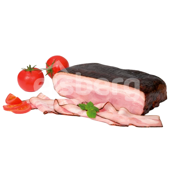 Vyrobena z vepřového boku, obarvená kulérem a zauzená přírodním kouřem.