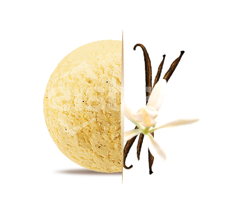 obnovené odtučněné MLÉKO, voda, glukózo-fruktózový sirup, cukr, glukózový sirup, kokosový tuk, sušená SYROVÁTKA, kousky vanilkových lusků, stabilizátory (guma guar, karubin, guma tara), emulgátor (mono- a diglyceridy mastných kyselin), přírodní vanilková aromata, barvivo (karoteny). Může obsahovat ječmen, sóju a vlašské ořechy.
